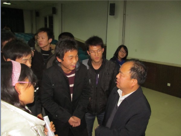 向同学们解答完对本专业的疑问之后,李教授向大家讲解关于信仰与追求的问题,在思想方面教育大家。他举了世界三大宗教的一些思想,并总结说这些思想都是在让人们要行善,这样才能使社会更加和谐统一。他还表示,他主张大家在课余时间多学习传统文化,这样将有利于大家自我反省及思想的成熟。在这之后他从哲学角度简单介绍了社会现状,并说:“一个企业不在于能挣多少钱而是养活了多少人!”这对大家来说,可谓一次丰盛的思想教育大餐。