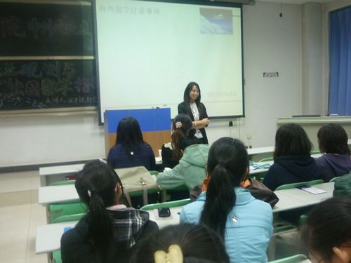 2010年11月18日晚7点外语学院中外文化交流节活动之三职业规划与出国留学指导讲座在渭水校区修远4201教室成功举行。本次讲座的主讲人为:汇丰银行客户经理袁旭,惠博,陈蕾和胡静。我校各院对此感性趣的同学积极参加了本次讲座。本次讲座由我院团委干事冯泽野主持。
