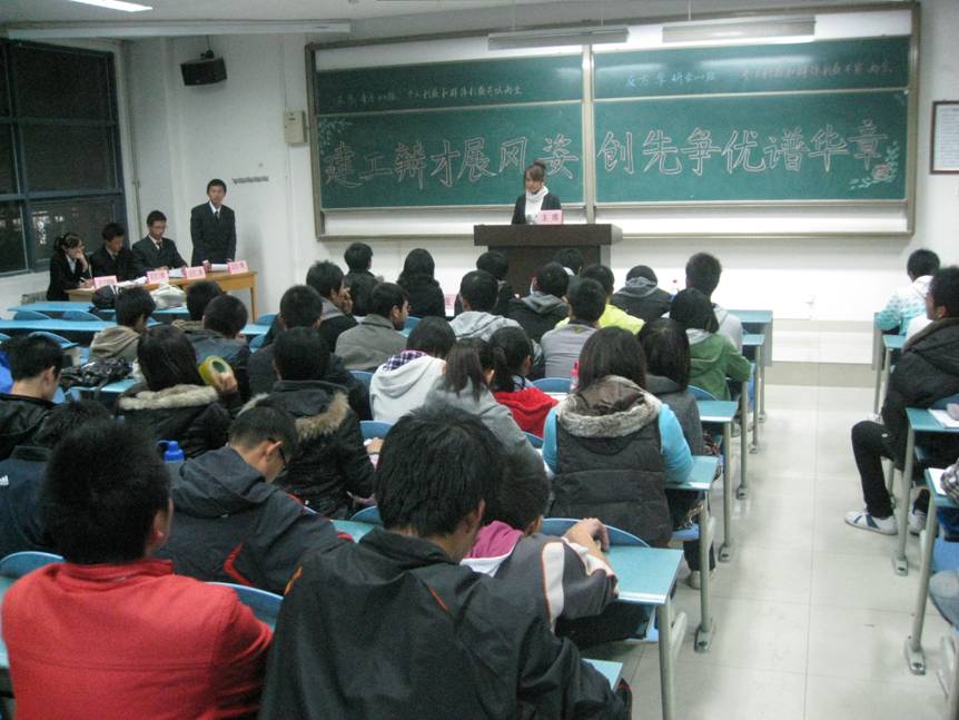 2010年11月21日晚,建工学院“建工辩才展风姿,争先创优谱华章”辩论赛在明远教学楼3203教室举行。参加此次辩论赛的选手来自建工学院青年马克思主义培养学校和中国特色社会主义理论学习研究会学员。此次比赛特邀哲校会副主席张宇,工程机械团委副书记刘佳,文传学院团委副书记姬鹏飞,思辩论协会辩论部部长吴宪担任评委嘉宾。