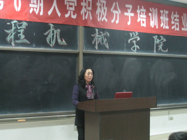 2010年11月23日晚,工程机械学院二级党校第六期入党积极分子培训班结业典礼在图书馆东侧1101教室隆重举行,长安大学党校常务副校长宋美红老师、工程机械学院党委书记刘晓婷老师、工程机械学院党委副书记曾力老师、工程机械学院学办主任程宝虔老师以及工程机械学院09级辅导员杨鹏老师、10级辅导员王博老师出席了此次典礼,典礼由工程机械学院党委副书记杨密侠老师主持。