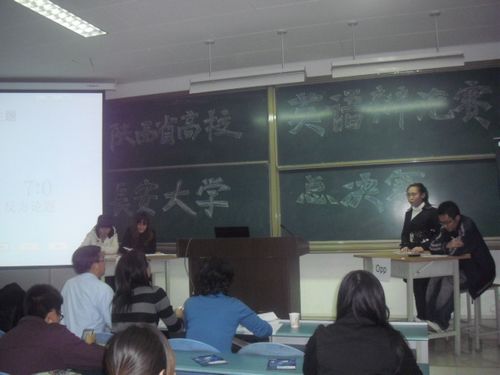 2010年12月3日19点,我院于渭水校区明远3101多媒体教室成功举办高校英语辩论赛长安大学决赛。晋级决赛的共有12名来自不同学院的参赛选手,我院英语系主任李微,英语系副主任赵斌和我院讲师田庄园担任本次辩论赛评委,本次大赛由我院大三英语系学生张雨舸及我院学生会学术部部长刘一敏主持。 参加本次比赛的12名选手在赛前通过自由组合,2人一组,组成六支参赛队伍,并以抽签的形式确定各自辩题。 首先,主持人向大家介绍本次辩论赛的规则:正反双方一辩各自进行4分钟观点陈述,接下来正反双方各有七分钟时间进行自由辩论,最后正反双方二辩各自进行4分钟的观点总结。主持人致词后,辩论赛正式开始。 本次三场辩论赛的辩题分别是“On the road of life ,we should learn to be satisfied or we should never be satisfied”;When facing love, you will be happier once choosing the person you love or the person who loves you;和 The developement of our economy can prevent the deterioration of the enviornment or not.在开篇的观点陈述环节中,双方一辩都各自清晰完整地陈述了所持观点,并适当结合具体实例进行论证,使各自的观点更加具有说服力。在自由辩论环节中,选手们更是尽显风采,合理的论述,恰当的手势,流利地道的英语博得了现场观众的阵阵喝彩。自由辩论期间正反双方都能步步紧逼,抓住对方的漏洞,及时进行有力反攻,将辩论推向一个接一个的小高潮。 比赛结束后,由主持人当场公布各参赛队最后成绩。最终,三支代表队分别获得一等奖,二等奖,三等奖,其他三支代表队获得优胜奖。其中获得一,二,三等奖的代表队将在接下来高校辩论赛中代表我校参赛。 通过本次辩论赛,选手们表示比赛本身是对自己的一次挑战,要用英语准确流利地表达自己的观点需要做更多的前期准备,并且在这一过程中,同学们彼此之间锻炼了团队合作和协调能力,大家纷纷表示今后将继续参加此类活动。