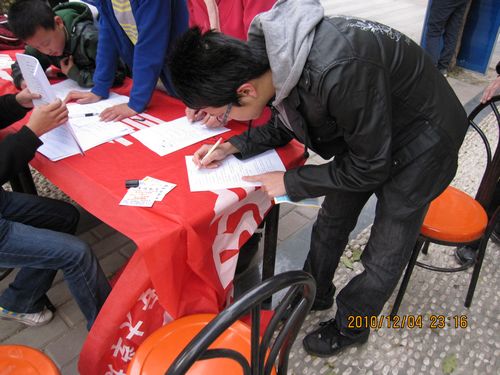 2010年12月5日,地测学院阳光志愿服务团一行数十人来到海容阳光广场,进行了防火知识进社区的活动。此次活动中,阳光志愿服务团的志愿者们与社区居民形成了良好互动,为在干燥的冬季普及防火知识,提升广大居民的防火技能,提高防火忧患意识,起到了积极作用。