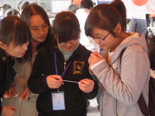 上午9点半,机械服务队全体成员在滋兰苑广场集合,开始着手布置活动场地,并由各部长明确了相关人员在活动中的具体分工。每个人都干劲十足,激情洋溢。11点活动准时开始,虽然北风徐徐,但明媚安逸的阳光、活动现场的气氛让所有人干劲十足、激情饱满。活动进行的过程中,服务队工作人员向同学们详细介绍本次活动的主旨和开展细节,热情邀请闻讯前来的同学们参与此次活动,并赠送奖品。同时,机械服务队也向同学们展示出半年来取得的成果,宣传了志愿者精神,将“奉献、友爱、互助、进步”的思想注入同学们心中。伴随着旋律优美、节奏轻快的音乐,整个活动就在这样轻松、愉快的氛围中进行着,不论是参与活动的同学们还是服务队的工作人员,所有人的脸上都洋溢着幸福的笑容。