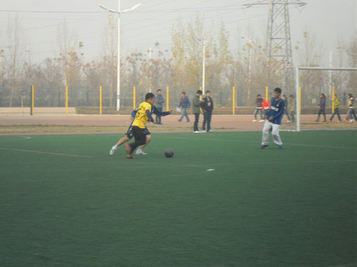 12月4日下午15时,2010年长安大学男子足球联赛四分之一决赛在朝晖体育场打响,对阵双方是我院男足和文传学院男足。最终我院男足以2:1力克对手,挺进本届足球联赛的四强。院党委副书记田猛老师、院团委书记汪治国老师、09级辅导员宋典老师专程赶到现场为球员们加油助威。