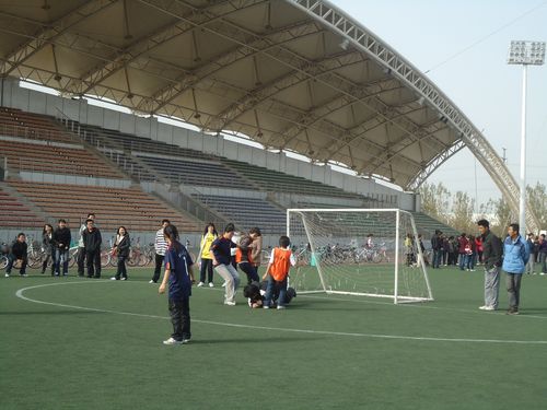 在此期间,在场边观看比赛的同学们情绪同场上队员一样激动,人群中加油呐喊声一浪高过一浪,他们的心同场上队员的心紧紧连在一起。