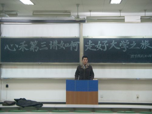 10级新生入学已有三个多月的时间,他们从进校之初对大学的新鲜感到现在对大学的学习、生活有了初步了解同时也充满疑惑。为了配合学校新生教育工程使新生们全面了解大学的学习、生活并合理的规划自己的未来,我院彩虹驿站邀请学院党委副书记姜洪老师于12月5日晚7点为理学院在渭水校区的10级学生作了一场以“如何走好大学之旅”为主题的报告会。