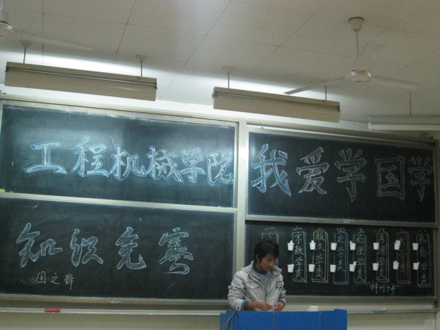 2010年12月6日晚,工程机械学院“我爱学国学”知识竞赛初赛在WX1102,WX1103,WX1105,WX2102举行,来自我院10级的18个代表队参加了此次竞赛。竞赛采取淘汰制,所有参赛队伍共分为九个小组,每两队为一小组进行对抗,每个小组的获胜者进入复赛。