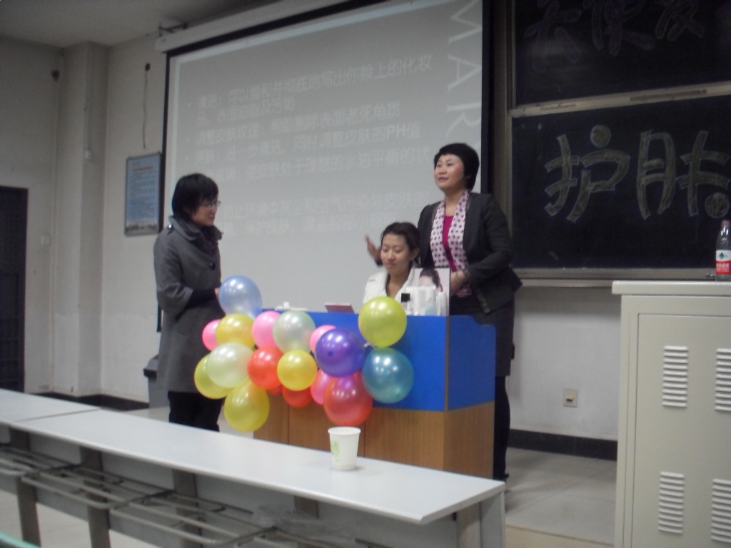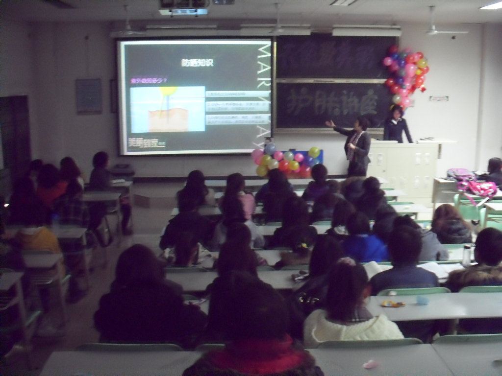 2010年12月12日晚7点,建筑学院在渭水校区修远4101教室举办了一次别开生面的美容护肤讲座。本次讲座由院团委学生会女生部主办,玫琳凯公司美容顾问杜娟老师主讲,10级全体女生参加了本次讲座。