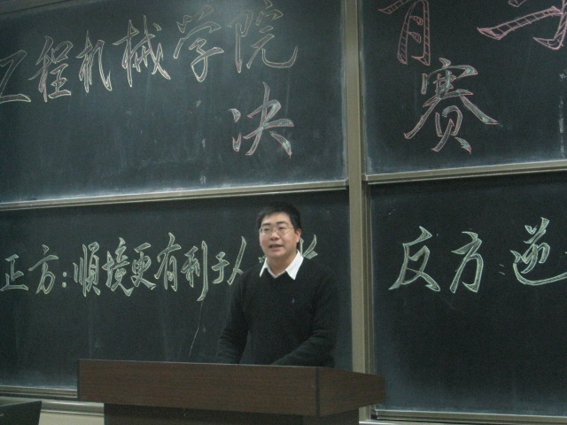 2010年12月14日晚,工程机械学院青马培训班辩论赛决赛在图文1101教室隆重举行,工程机械学院党委副书记、青马培训班副校长曾力老师,工程机械学院团委书记朱武威老师,工程机械学院09级辅导员杨鹏老师、10级辅导员王博老师出席了此次辩论赛并担任评委。
