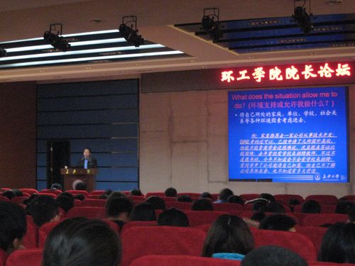 为帮助我院三年级的学生消除在考研和就业选择上存在的困惑,环工学院于2010年12月14日晚七点在渭水校区会议中心报告厅举办“就业与考研”院长论坛专题讲座。此次讲座由院党委副书记张金玉主讲。出席这次讲座的有院学工办副主任兼团委副书记邓红章老师、09级辅导员陈洁老师,学院08级部分同学听取了此次讲座。