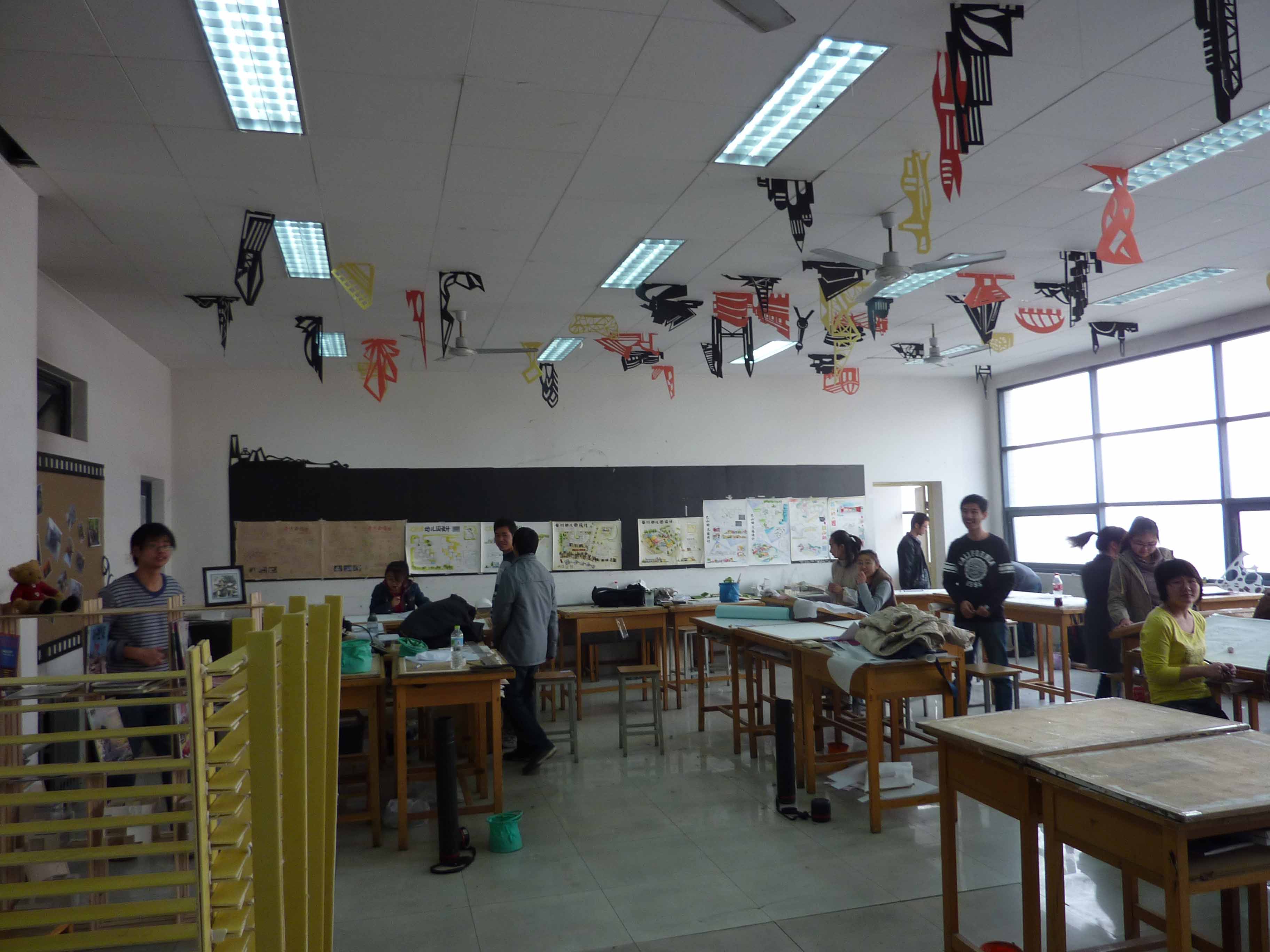 从装饰效果看,各班充分展示了本班的特色,专教在同学们的创意思想下变得焕然一新,很多班级都在装饰中融入了构成和空间的专业思想,充分展示了建筑学院的特色与风采。此外,同学们也不忘“校庆”主题,或在墙面上,或在入口处制作了一些关于自己对学校的理解与对母校的祝福的装饰,充分贯彻了本次系列团日活动的主题思想。在审评期间,周文宁老师经常饶有兴致地对在场同学阐述她的专业想法,并亲切地提出了自己对专教的建议,以帮助相应班级更好地改善专教环境。