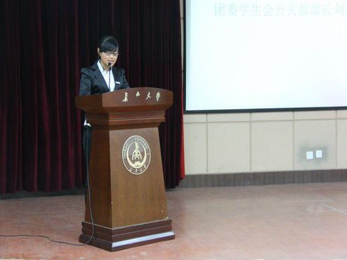 之后,学生团干代表发言。院团委学生会公关部部长刘帅同学、院团委记者团干事王怡然同学以及08级法学一班团支书郭洋洋同学分别上台,就自己在院团委的工作经历以及从事班级团支部工作的心得与体会和大家进行了分享交流。她们纷纷表示,在院团委这个大家庭中,取得了许多收获的同时也感受到了家的温暖。