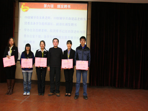 接下来,与会领导和老师为院团委及各直属学生组织学生干部颁发聘书,并合影留念。