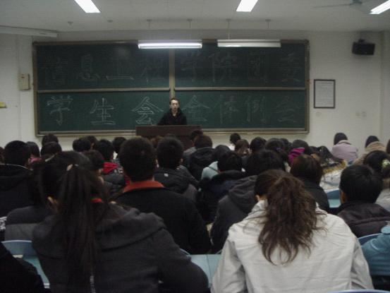 2011年3月4日星期五下午7点整,信息工程学院团委学生会第一次全体例会在明远3205教室召开。会议由学生会副秘书长樊莹主持。
