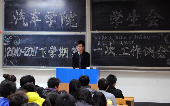 2011年3月3日晚7:00,汽车学院学生会2010-2011学年第二学期第一次工作例会在渭水校区修远1102教室召开。院学生会全体成员出席了此次例会,会议由院学生会副秘书长张浩主持。