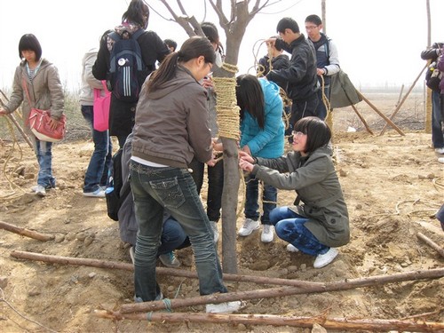 2011年3月6日,长安大学经济管理学院10级物流管理二班在渭河南堤开展了以提高义务植树意识,珍惜绿色家园为目的的“春风行动—共创绿色家园”的主题团日活动。