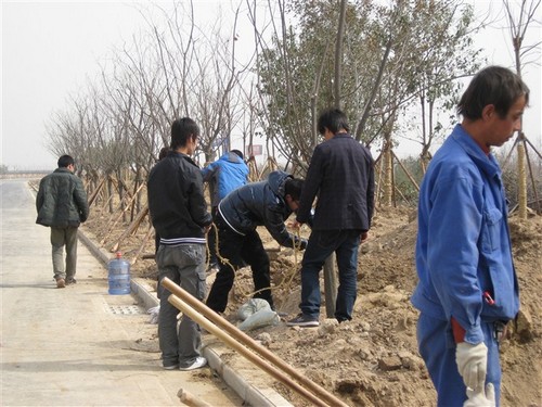 本次活动主要有实际体验种植树木的过程和环保知识的宣传这两部分组成。活动从工人师傅对我们进行植树指导开始,接着同学们在师傅们的指导下开始了对树木主干的包扎,从师傅的讲解中同学们明白了:通常只有新栽不久的树干上才缠绳子,为的是保持枝干的湿度(因为绳圈的稻草可以吸湿,并且防止树干水分蒸发),对提高成活率有帮助,而树缠了绳子也可以在一定程度上防止冻伤。后来,我们用三角木桩稳定了树体,对树体进行了支撑固定,慎防倾倒。在此活动中,班级成员都积极地参加到了活动中,为活动贡献了自己的一份力,受到了工人师傅们的一致好评。
