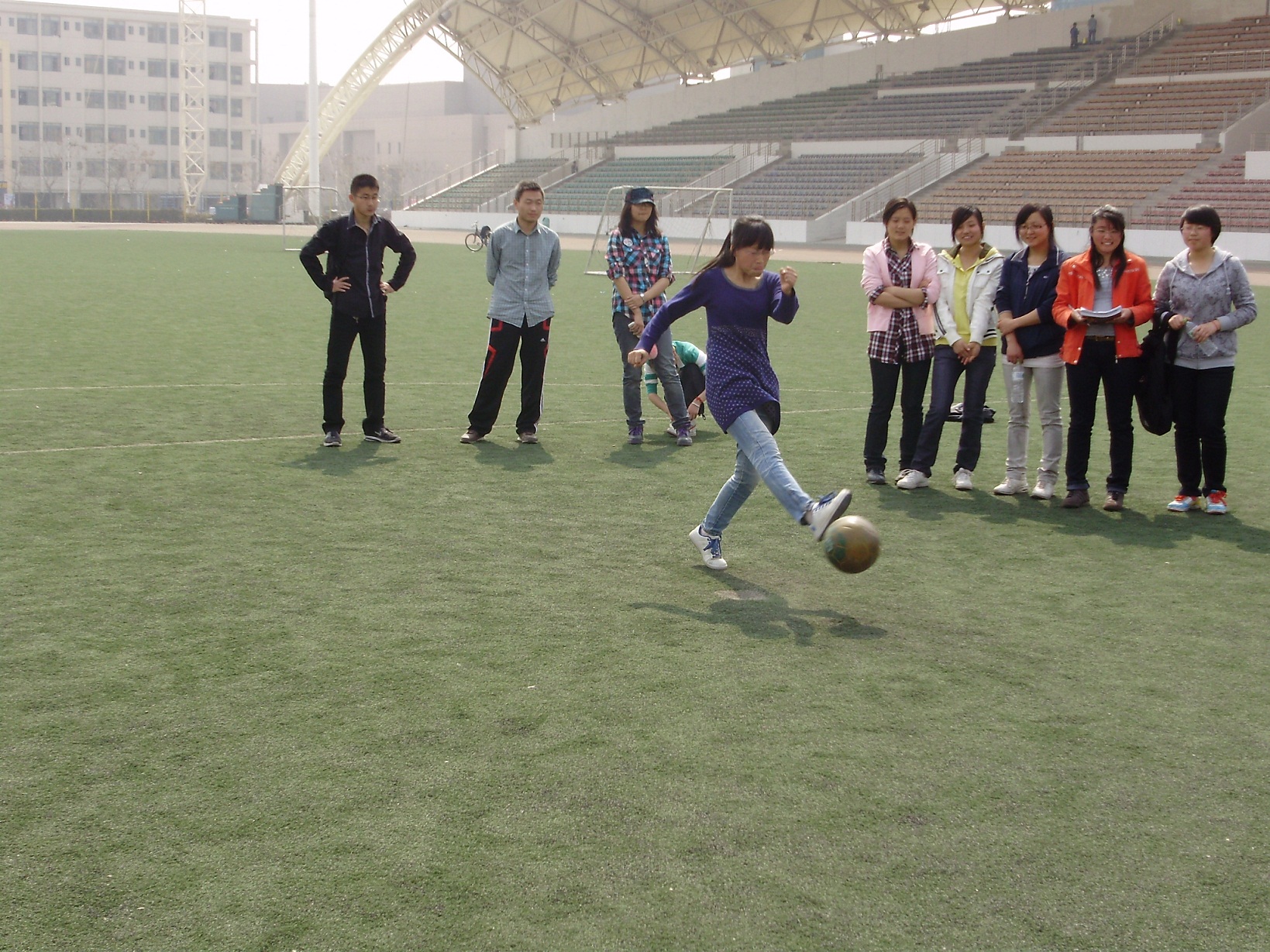 同时,资源学院团委学生会也为女生设计了娱乐运动项目——点球大赛。09、10级各班派出三名女生为队员,一名男生为守门员。女生射门,男生守门。每位女生有三次射门即得分机会,得分多者则胜。“谁说女子不如男”,不少女生多次进球得分,突破了男生的守门,赢得了场外一阵又一阵的欢呼声和声声赞叹。