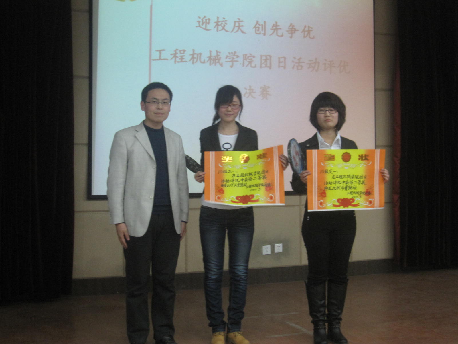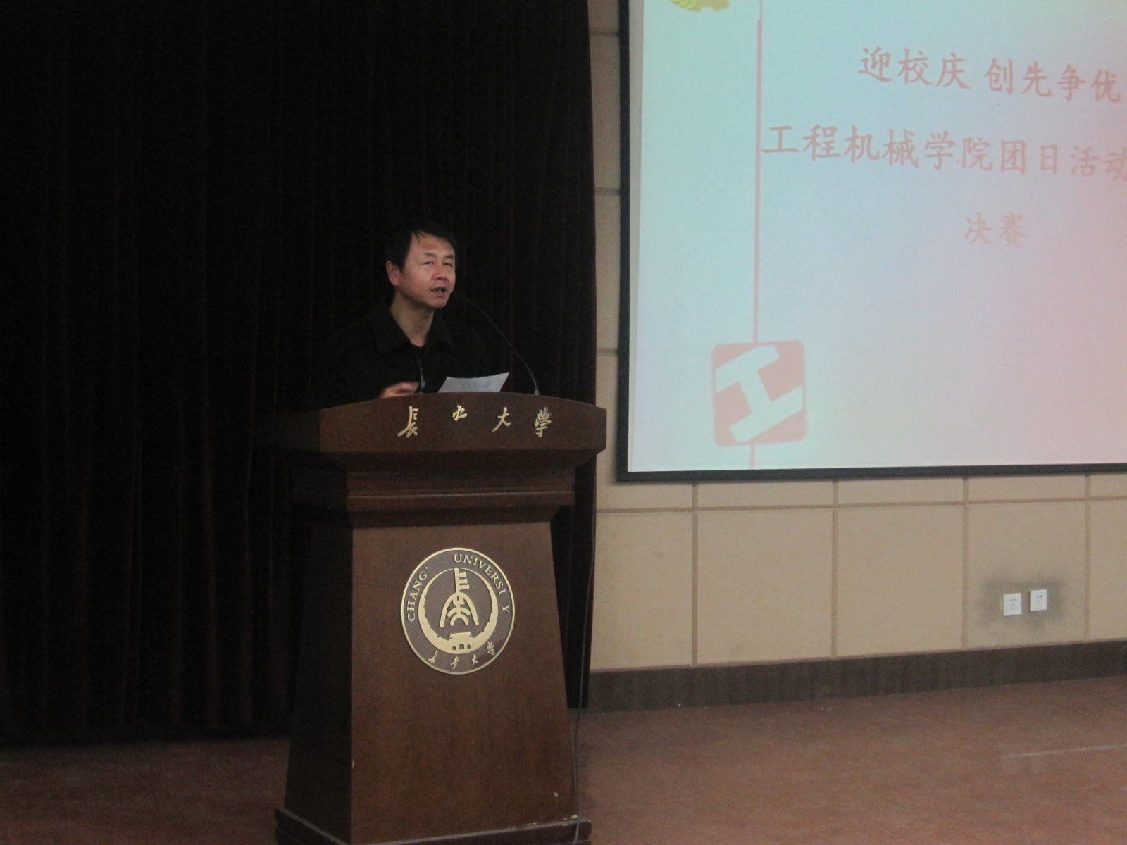 2011年3月23日晚,长安大学工程机械学院“迎校庆、创先争优” 团日活动评优决赛在朝晖大学生活动中心三楼隆重举行。工程机械学院党委副书记曾力老师,长安大学团委社会实践与科技服务中心主任姬国斌老师,工程机械学院团委书记朱武威老师,08级辅导员赵良臻老师,09级辅导员杨鹏老师,10级辅导员王博老师出席了此次活动。来自工程机械学院09、10级共十个团支部在此次比赛中进行了激烈角逐。