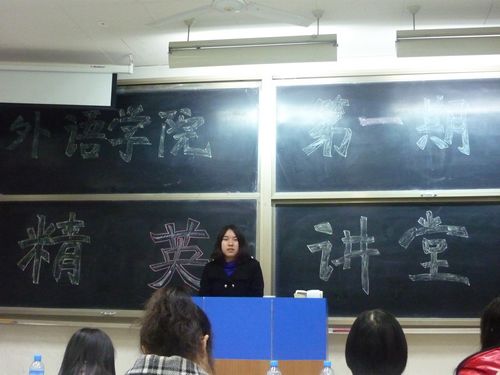 2011年3月27日晚7点,我院2010-2011年度下学期第一期精英讲堂于渭水校区修远1204教室成功举办。本次精英讲堂的主讲人为向觅,刘玲,郑晓东,徐巧涟等四名我院大四学生,外语学院团委学生会集体成员参加了本次精英讲堂,本次讲堂由团委学生会实践部干事杜娅楠主持。