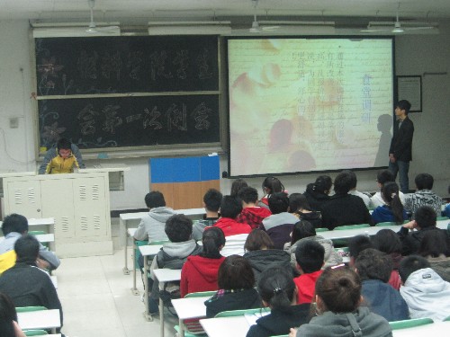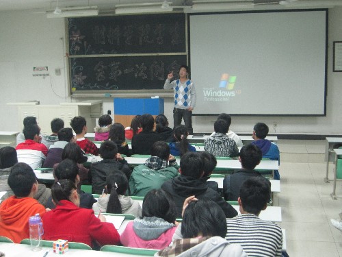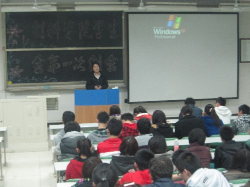 然后,学生会副主席谢莎莎同学也针对大家在PPT和演讲方面的问题作了指导,她指出大家要注意细节,努力克服演讲过程中的紧张情绪,彼此之间要多沟通、交流。