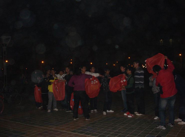 晚上22时,六盏贴有精选的60张祝福语的孔明灯于树蕙园广场冉冉升起,为长安大学的夜色带来了一抹鲜亮的色彩。地工一班团日活动在同学们的翘首仰望中圆满结束。同学们望着孔明灯升起的方向,望着长安大学未来的曙光。相信在我们的努力下,长安大学在她六十华诞后,将会续写新篇章,延展新辉煌。