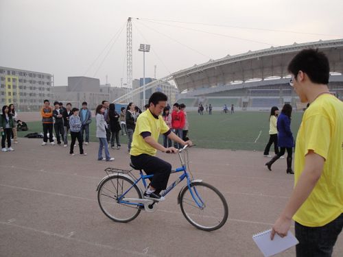 本次比赛包括慢骑自行车、跳小绳、跳大绳三项。同学们大都提前到场进行练习,比赛时现场气氛十分热烈。学生会工作人员统一身着黄色上衣,做好现场秩序维持工作。慢骑自行车是趣味性最强的比赛项目,场上的选手为了掌握好重心而把自行车扭来扭去的场景逗得观众捧腹而笑。跳小绳比的是技术和体力,同学们在这项活动中体现了自己良好的身体素质。跳大绳则彰显了大家团结和协调精神,进一步提高了班级的凝聚力。