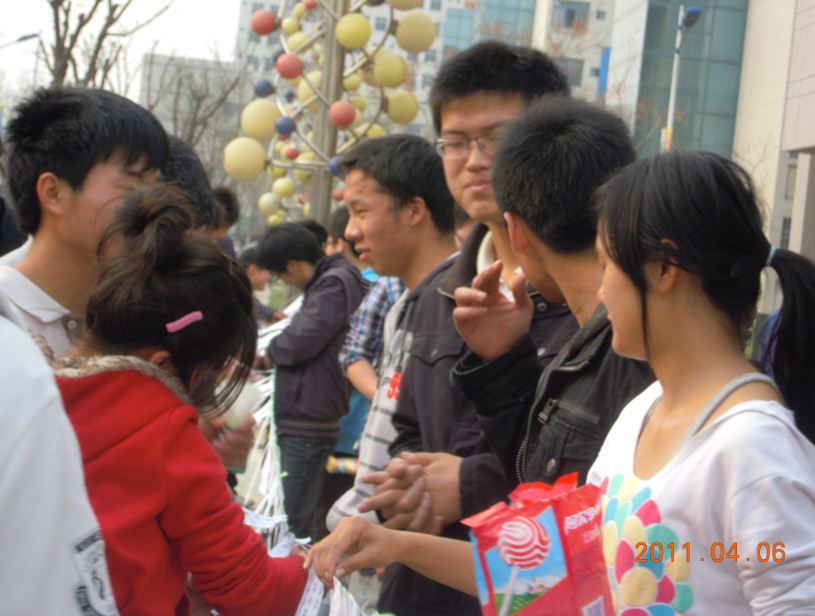 为迎校庆60周年,我院10级勘查一班以“喜迎长大60周年”为主题,举办了团日活动。此次后动分为两部分,第一部分是草滩敬老院之行,第二部分是长大科技知识竞答。分别于2011年3月26日在敬老院和2011年4月6日在树蕙园广场取得良好成果。