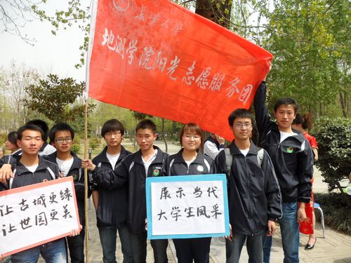 为了提高大学生的社会责任感和社会实践能力,共谋学生全面发展新思路,将学校教育与社会教育相结合,提高大学生综合素质,促进西安不同高校间学生会的交流,共建互助进步的兄弟情谊,同时响应“天人长安,创意自然”世园会主题,倡导“低碳环保”的城市生活理念,我长安大学地测学院阳光志愿服务团派出由各个部门代表组成的7人团队,于2011年4月10日参加了由西安建筑科技大学信息与控制工程学院主办的“绿动长安、魅力世园”环保公益行动。参与本次活动的单位还有分别来自西安不同高校的9所院系代表团。