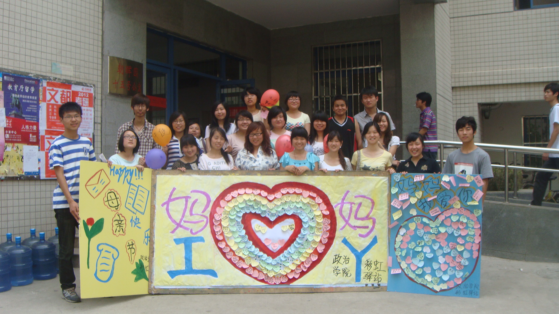 此次“感恩母亲节,让爱传万家”活动是“5.25”心理健康月系列活动之一。本次活动以同学们给母亲写祝福语、给母亲邮寄书信和祝福卡片、为楼管阿姨送康乃馨等方式来庆祝母亲节。