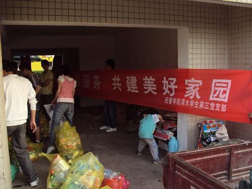 活动中,渭水学生第三党支部全体党员处处起模范带头作用,在活动中表现优秀、在实践中服务群众,在同学中反响较好,吸引了更多的大学生积极向党组织靠拢。尤其是在开展“倡导节能环保,资源回收再利用”活动时,学生党员们拿着自制的袋子在校园及宿舍中收集废瓶子及废书报,集中起来处理,这样既美化了环境,又将处理这些废品的钱资助了困难学生,尽管钱数不多,但却使被资助的同学感受到了温暖。为了改善渭水校区西区四、五号公寓楼的环境,解决这两个公寓楼之间长期存在的自行车乱停乱放问题,支部的学生党员每天轮流义务整理摆放在楼下的自行车,并对乱摆放的自行车贴温馨提示卡,提示按秩序摆放,经过这一阶段的活动,这一地方乱摆放自行车问题得到了基本解决,同学们出行的道路更加宽敞。