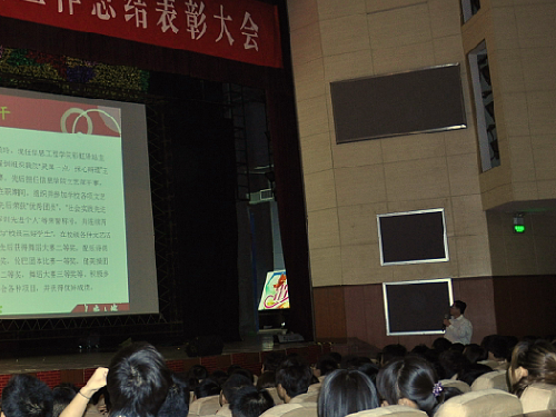 2011年5月10日,信息工程学院渭水校区学生骨干讲评会在大学生活动中心一楼大礼堂圆满召开。院党委副书记杨玉龙出席会议,全体学生骨干参加了此次会议。