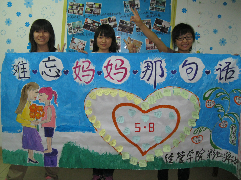 在母亲节来临之际,为表达对母亲的美好祝愿,拉近与母亲之间的距离,2010年5月7日,经管学院彩虹驿站成功举办母亲节“难忘妈妈那句话”话语征集活动。