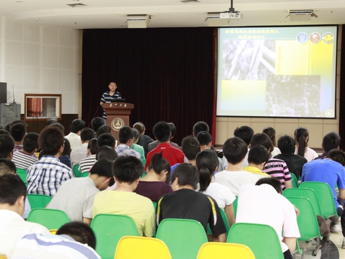 首先是由研究生叶青同学主讲《高性能混凝土在重大工程中的应用研究》,他围绕高性能混凝土的研究与应用首先向大家介绍了胶凝材料的发展历史,并指出先辈的探究为我们现在的研究奠定了基础,也为我们今后的发展指明了方向,继而他详细地介绍了这种混凝土在我国西部地区特别是察尔汗盐湖和青藏铁路,具有广泛的应用;同时,他也强调高性能混凝土的研究前景广阔,希望大家能不断地学习和研究,进而更好地造福社会。