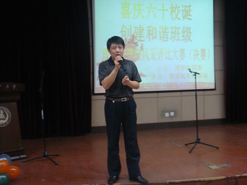 为即将到来的建党90周年礼唱赞歌,为长安大学60华诞献礼,倡导同学们感恩学校,立志作一名合格的“长大人”,同时,在班级中掀起创先争优的高潮,鼓励同学们树立主人翁意识,将班级打造成具有“家”文化的班级,并将创先争优的良好势头带到日后的学习、工作中,由理学院团委主办彩虹驿站承办的“喜庆六十校诞,创建和谐班级”班级风采评比大赛(决赛)于5月19日晚在大学生活动中心多功能厅举行。我院党委书记胡予欣老师,党委副书记姜洪老师,校团委张红老师,院团委书记汤颖颖老师,学院辅导员孙莺纯老师出席活动并担当评委,理学院渭水校区全体学生观看了此次大赛。