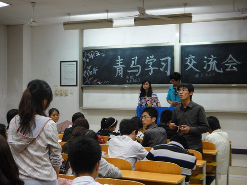 2011年5月20日晚7时,建工学院“青马学习”交流会在修远1102教室召开。参与此次交流会的为建工学院团委副书记郑益斌以及两院青马班的全体成员。