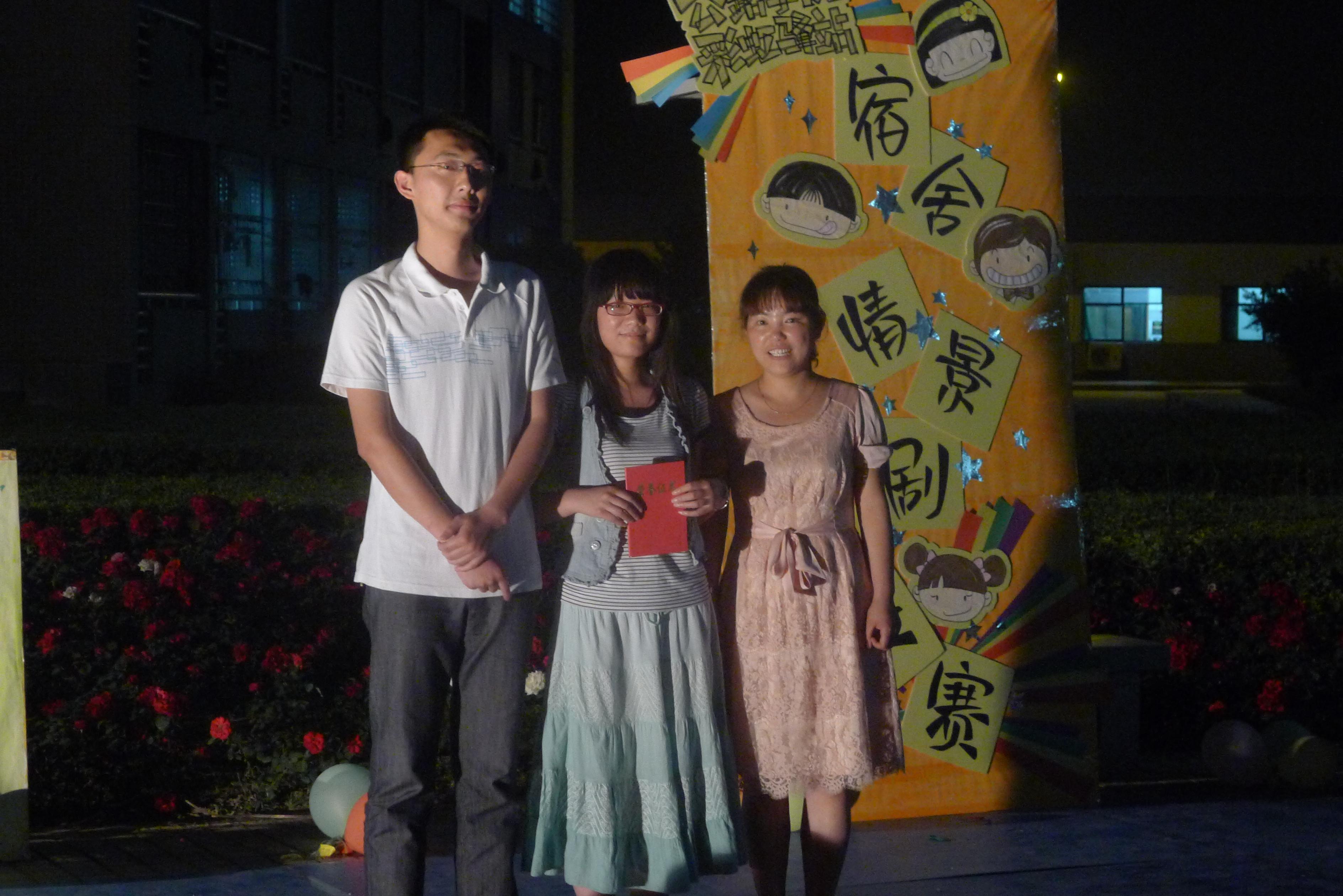来自3542宿舍的情景剧——男生宿舍的蜕变、6138宿舍的偶像剧——恋爱风波、2221宿舍的DV故事——“I feel you in your dream”、6133宿舍的情景剧“窈窕淑女”,一次又一次将活动推向高潮。期间,欢呼声不时的从两旁的宿舍楼里传出,他们为表演者的精彩欢呼,更为比赛增添了青春的色彩!表演结束,评委依次对各组点评。最终,大赛一等奖由 6133宿舍获得。