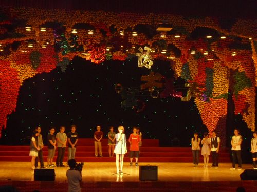 在展示自我的舞台上,选手们用多彩的语言诠释情怀,用优美的歌声展现个性,让观众们在一场独具特色的异国情调中感受到外语的多彩与音乐的魅力。在这个舞台上,既有展现自我的独唱,也有赋有默契的三人组合,更有独具魅力的乐团组合展现;既有优雅的日、韩文歌曲,还有节奏强烈的rap,可谓异彩纷呈,百花齐放。而现场选手与观众的互动,亲友团们的加油鼓劲更是把比赛一次次推向高潮。大艺团的同学为本次比赛献上民乐:奇迹。把现场气氛再次调动起来。