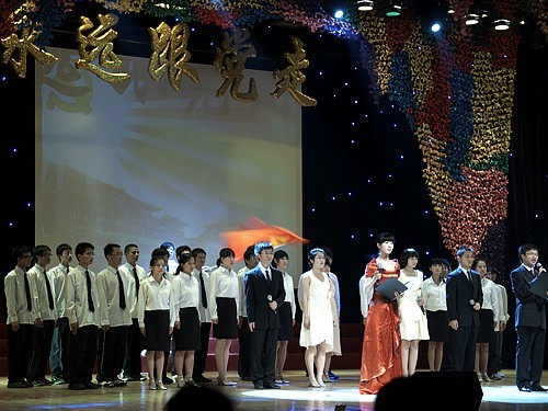 5月29日晚7时,信息学院“纪念建党90周年‘永远跟党走’配乐诗朗诵大赛”决赛在渭水校区大学生活动中心大礼堂顺利拉开帷幕。
