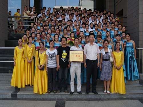 校党委书记雷达为一等奖获得单位颁奖,王景荣书记代表学院上台领奖。赛后,雷达书记、白华副书记等出席此次歌会的校领导与我院代表队合影留念。