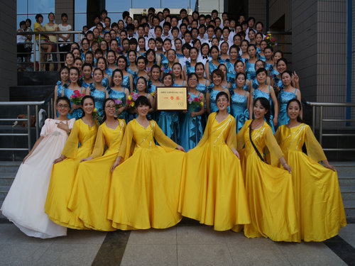 本次歌咏比赛,我院代表队演唱了《在灿烂的阳光下》和《祖国不会忘记》两首曲目。整齐的服装、饱满的热情、优美的旋律、激情的的指挥和嘹亮的歌声征服了现场的评委和观众,演唱时高潮迭起,场下响起了一阵又一阵热烈的掌声。9.47分的成绩也力压其他参赛队,获得第一名。