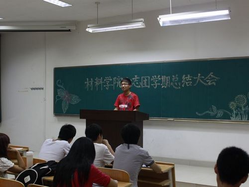 会议首先由各部门部长上台做发言。他们对本学期自己部门的工作档案做出总结,指出本学期工作量大,展开活动多的特点,这些都是大志团成员积极,热情,团结合作的结果。通过举办的每次活动,使同学们得到深刻的锻炼,提高了自己的能力,培养了自己的工作习惯。他们指出,同学们在工作时要学会抓重点、分清主次,并希望大志团内部管理能够更加科学、更加精细化。同时,部长,副部长们表达对同学们的祝愿,希望大家积极备考,收获好成绩。