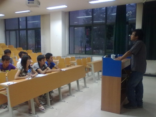 晚7点整,会议正式开始。首先进行的是部长、副部长的竞选,各位干事按照部门的顺序依次上台发言,他们进行了自我介绍,说明了自己想要竞选的职位,同时描述了自己的竞选优势以及对未来一年工作的构想。之后,由主席团、各部门部长对干事进行提问,以更好地了解干事对部门建设的构想。