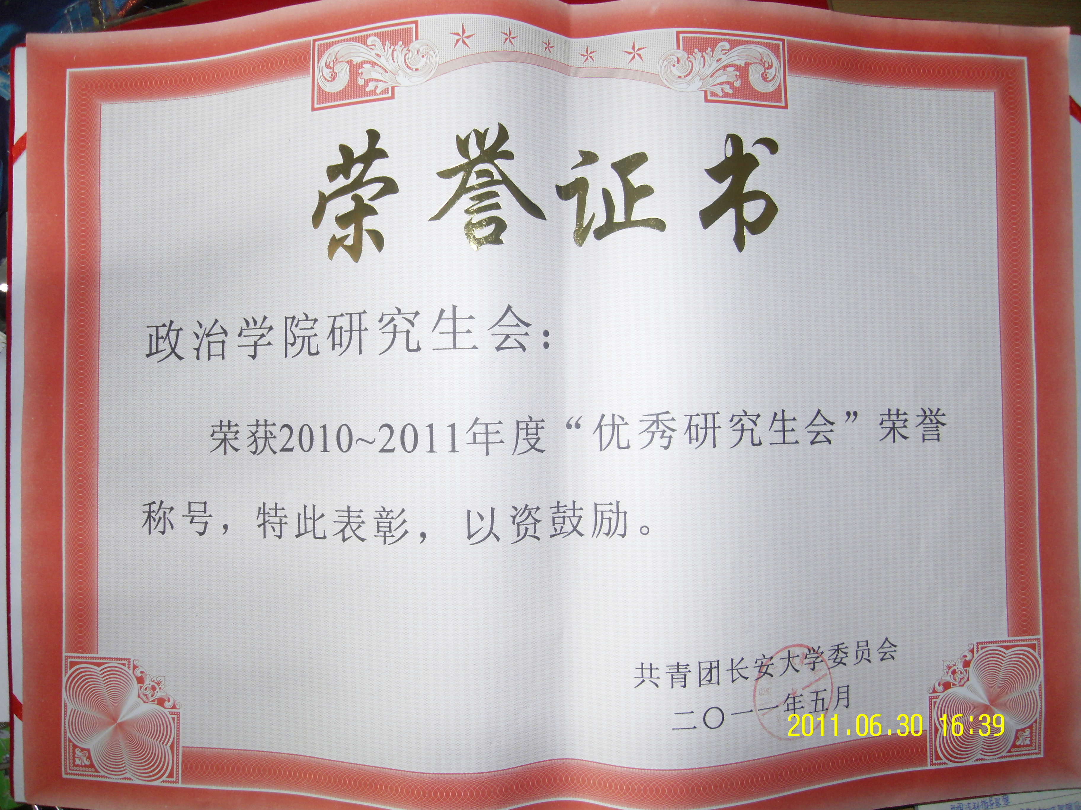 政治学院:我院团委荣获2010-2011年度长安大学“五四红旗团委”荣誉称号[图]