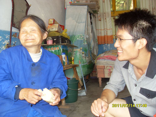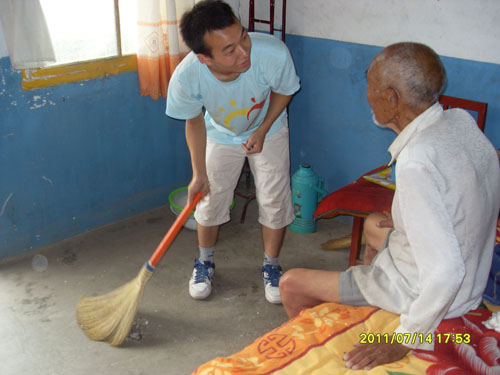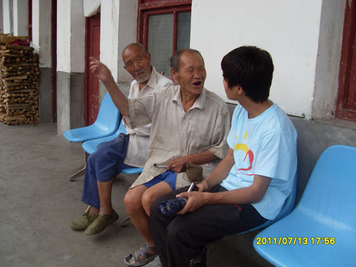 7月13日和14日下午,实践队派部分队员前往回龙镇敬老院看望老人并为老人服务。据了解,当地敬老院共有近30位老人,基本上是六十岁以上的,大多数是孤寡老人,生活不能完全自理。在我们拜访的老人中,有些已经是近九十的高龄了,同时很多都有如心脏病、高血压之类的老年病。