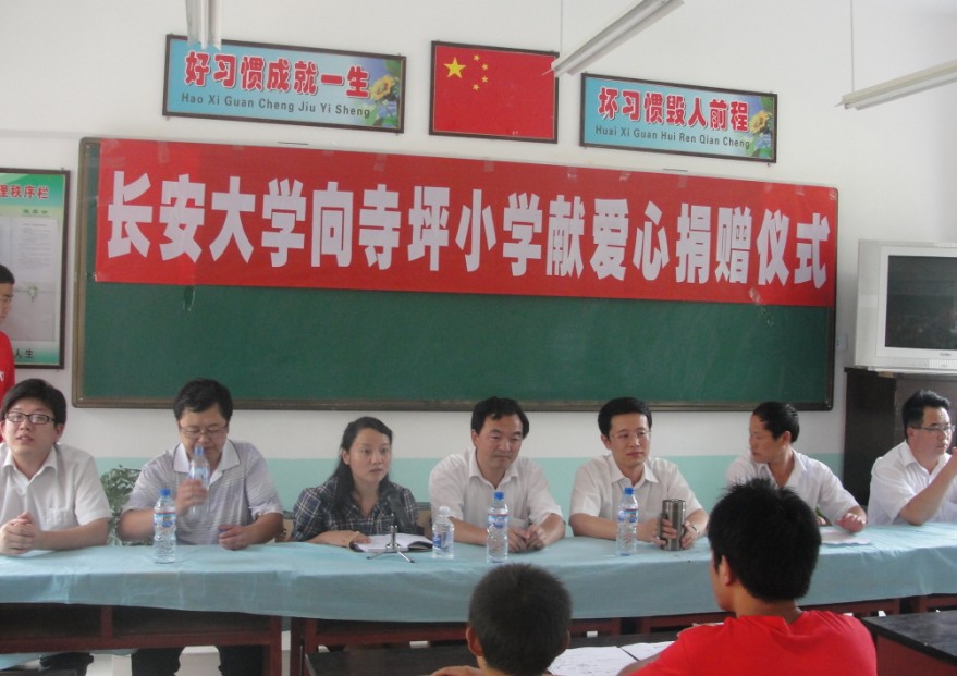 2011年7月16日,陕西省团省委和长安大学联合向寺坪小学爱心捐赠仪式在丹凤县寺坪镇举行,出席这次活动的有陕西省团省委学校部部长单舒平,长安大学校团委书记张骞文、信息工程学院党委副书记杨玉龙、团委书记赵建彬,丹凤团县委书记叶敏,丹凤县寺坪镇党委书记赵嘉安、镇长付学华。长安大学信息工程学院赴丹凤寺坪实践队队员以及寺坪小学的所有少先队员参加了此次活动。丹凤县电视台及当地媒体、报社对此次活动进行了报道。