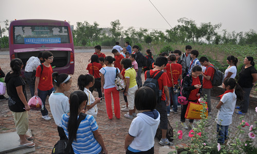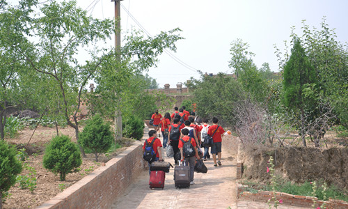 早上七点,一辆送我们回去旅游列车已经停在了村头。孩子们早已聚集在我们所住的人家,自发来送我们。他们有的拿着自家地里种的大红枣,有的拿着新鲜的桃子苹果。在司机的催促下,我们依依不舍的上了车。窗外,大孩子、小朋友,甚至我们所寄住的阿姨都在默默地抹眼泪,连村长眼眶都湿润了。车子缓缓启动,我们一起大声的喊了一句”深砭焉,再见”。