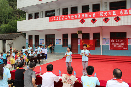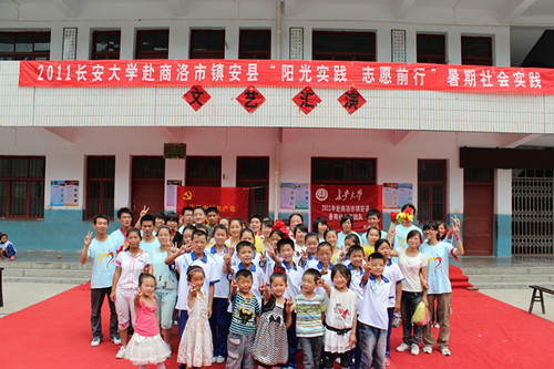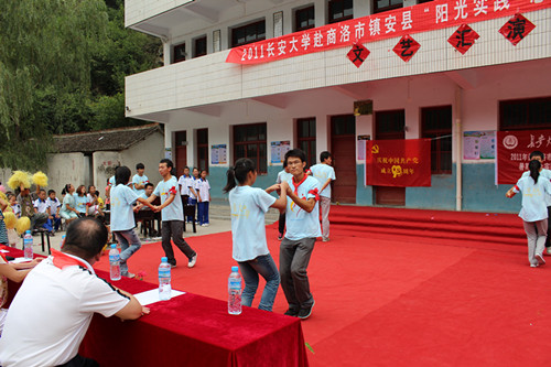 截止到2011年7月20日地测学院赴陕西省商洛市镇安县暑期社会实践活动已接近尾声,实践队在这天举办了一场以全校学生、回龙镇村民以及实践队所有队员为主要演员的文艺汇演。本场活动的目的主要在于增加当地的文化氛围、总结本次活动的成果、提升实践队员与学生们之间的师生情与友情,同时也为了给此次社会实践活动做出圆满的收尾。