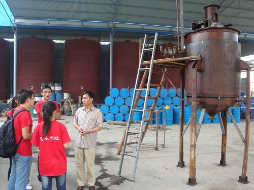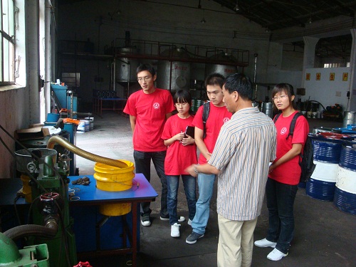 长安大学汽车学院董元虎教授做为团队的指导教师带领大家参观了通用公司的加工车间、生产设备和润滑油研究所。调研期间,董老师首先对两用燃料和双燃料做了概念上的区分,为队员们扫除了知识盲点。随后通用公司总经理杨超经理就公司的发展战略、经营理念、市场分析以及营销方式等方面与队员们进行交流。针对我们甲醇汽油发动机润滑油的创业项目,董老师解释如果没有专用润滑油,在使用甲醇汽油过程中,普通机油油质就会迅速恶化,发动机的磨损也会加剧,所以专用润滑油必不可少,不能代替。对于公司的定位,董老师提出宝贵意见,面对中石油,中石化两个强大的竞争对手,我们要利用小公司的优势,快速反应,灵活应对,着眼小市场,创造大业绩。最后,董老师提醒队员们要用辩证的眼光去看待问题,在充分认识甲醇汽油的优点和甲醇汽油发动机润滑油的不可替代性的同时,更要去探索,发觉甲醇汽油的潜在劣势和缺点,正确认识事物的两面性,老师严谨的治学态度让队员们钦佩不已。