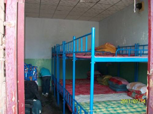 办公室里学生们早已生好了暖暖的火,打扫的干干净净。在不足十五平方米的宿舍里,摆了十张床一张桌子。宿舍里又潮又冷,但床上铺好的被子让我们一下子从心底里暖起来。